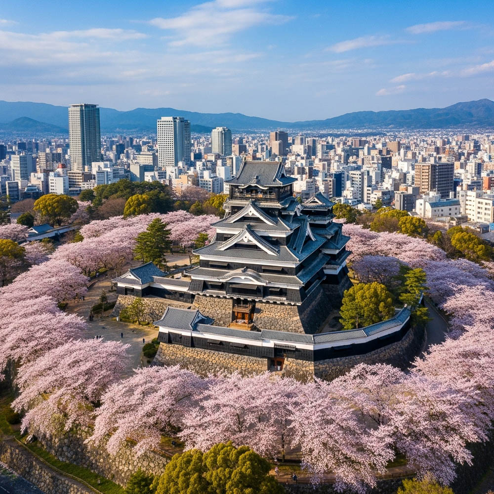 - 봄(3~5월): 벚꽃 명소 구마모토성·스이젠지 공원 만개