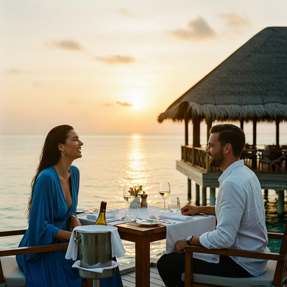수상빌라에서의 아침 식사, 바다 위 선셋, 별빛 아래의 저녁—all in one.
