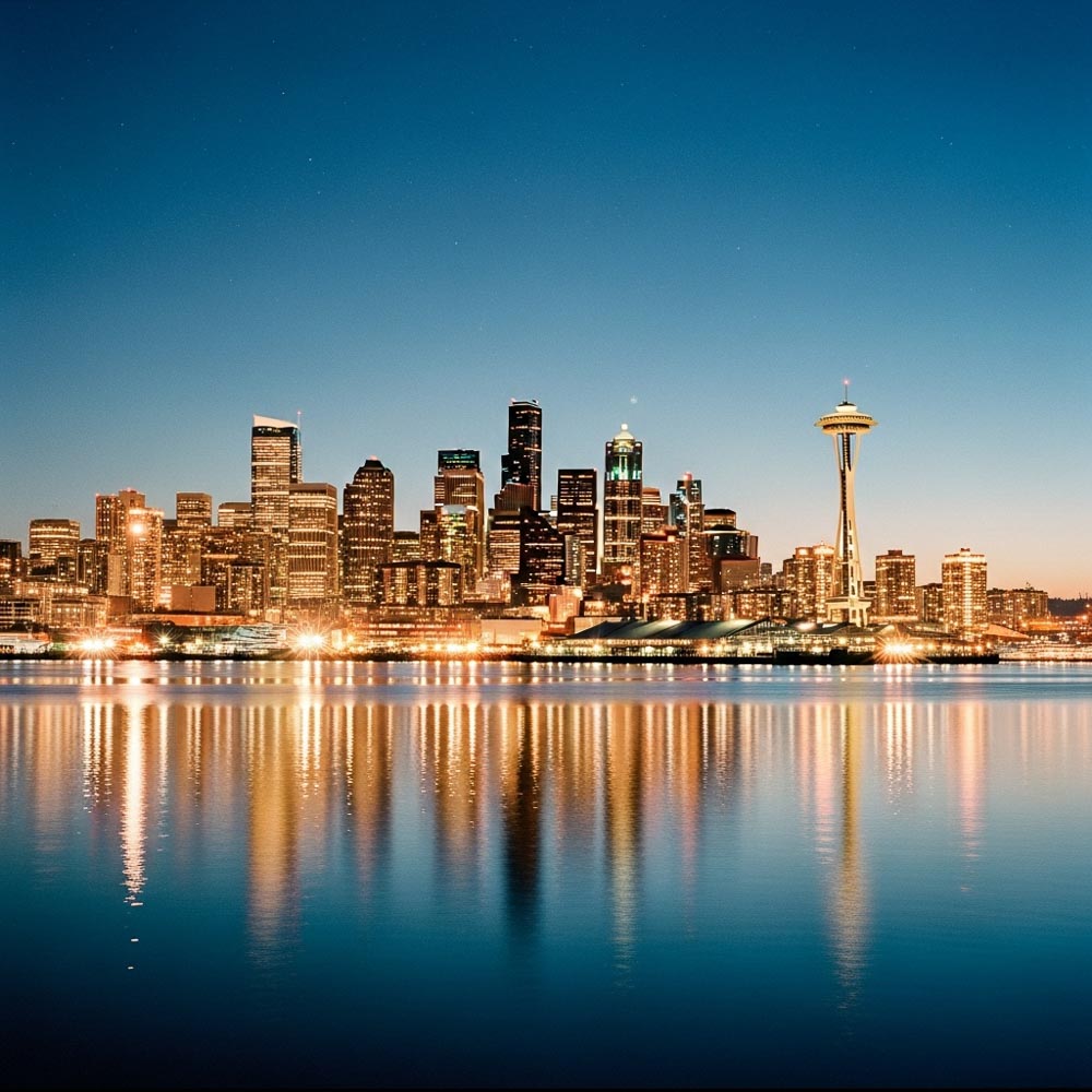 워터프런트 야경과 스페이스니들의 조명은 미국 시애틀 밤 풍경의 상징이며, 치안은 대체로 안정적이지만 홈리스 밀집 지역은 회피하는 것이 좋습니다.