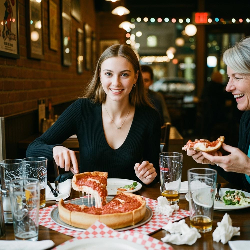 - 시카고 딥디쉬 피자(Deep Dish Pizza) – 두툼한 치즈와 토마토소스.