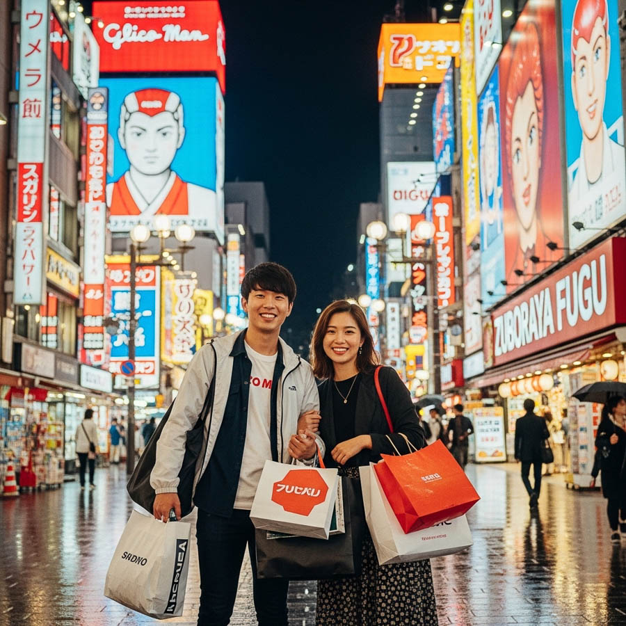 오사카 쇼핑의 핵심 지역으로, 관광·쇼핑·식사가 모두 한 동선에 있습니다. 기념품 숍, 드럭스토어, 패션 매장이 밀집해 있어 단시간 쇼핑에 최적입니다.