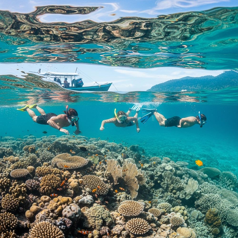 가야섬 → 사피섬 → 마누칸섬을 잇는 투어는 코타키나발루 여행의 정석입니다. 투명한 바다에서 스노클링을 즐기고 해변 레스토랑에서 점심을 먹으면 완벽한 하루가 됩니다.